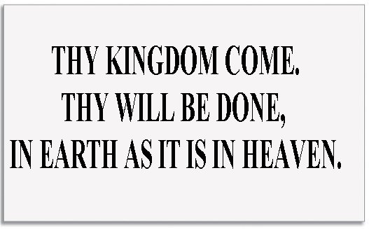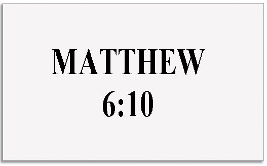MATTHEW 6:10 “THY KINGDOM COME. THY WILL BE DONE, IN EARTH AS IT IS IN HEAVEN.” (KJV, NASV, RSV)