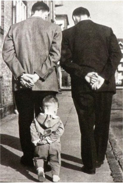 I remember, at a very young age, watching my father while he was waiting on something at a store, standing a certain way. I imitated him like the little boy is imitating the men in the photo above, and wondered if I would grow up to be like my father.