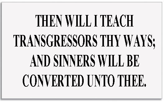 PSALM 51:13 “THEN WILL I TEACH TRANSGRESSORS THY WAYS; AND SINNERS SHALL BE CONVERTED UNTO THEE.” (KJV, NKJV, ASV, NASB)