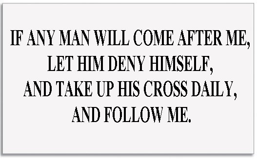 LUKE 9:23 “IF ANY MAN WILL COME AFTER ME, LET HIM DENY HIMSELF, AND TAKE UP HIS CROSS DAILY, AND FOLLOW ME.” (KJV, NKJV, RSV, NASB)