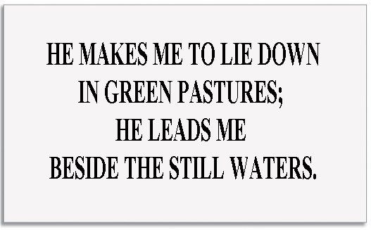 PSALM 23:2 “HE MAKES ME TO LIE DOWN IN GREEN PASTURES; HE LEADS ME BESIDE THE STILL WATERS.” (NKJV, KJV, RSV)
